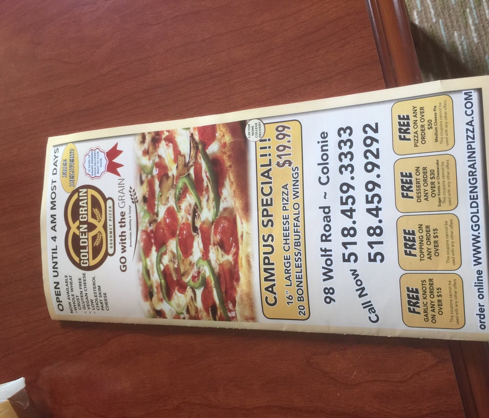 Golden Grain Gourmet Pizza, located in Albany, NY, offers a variety of options including vegan and vegetarian choices. With options for delivery, takeout, and catering, this casual restaurant caters to groups and families alike. Notable dishes include the flavorful Jalapeno Poppers, crispy Garlic Knots, and sugardusted Fried Dough Balls. Customer reviews rave about the quality of the pizza and wings, with one mentioning the delicious calzone and another praising the blend of cheeses in the Sicilian pizza. The establishment has a convenient location with plenty of seating options, including outdoor seating, and a diverse menu with 18 different pizza choices. While the dough may be preformed, it is crispy and crunchy, providing a unique texture to the pizzas. Overall, Golden Grain Gourmet Pizza offers a diverse menu with reasonable prices and a welcoming atmosphere.
